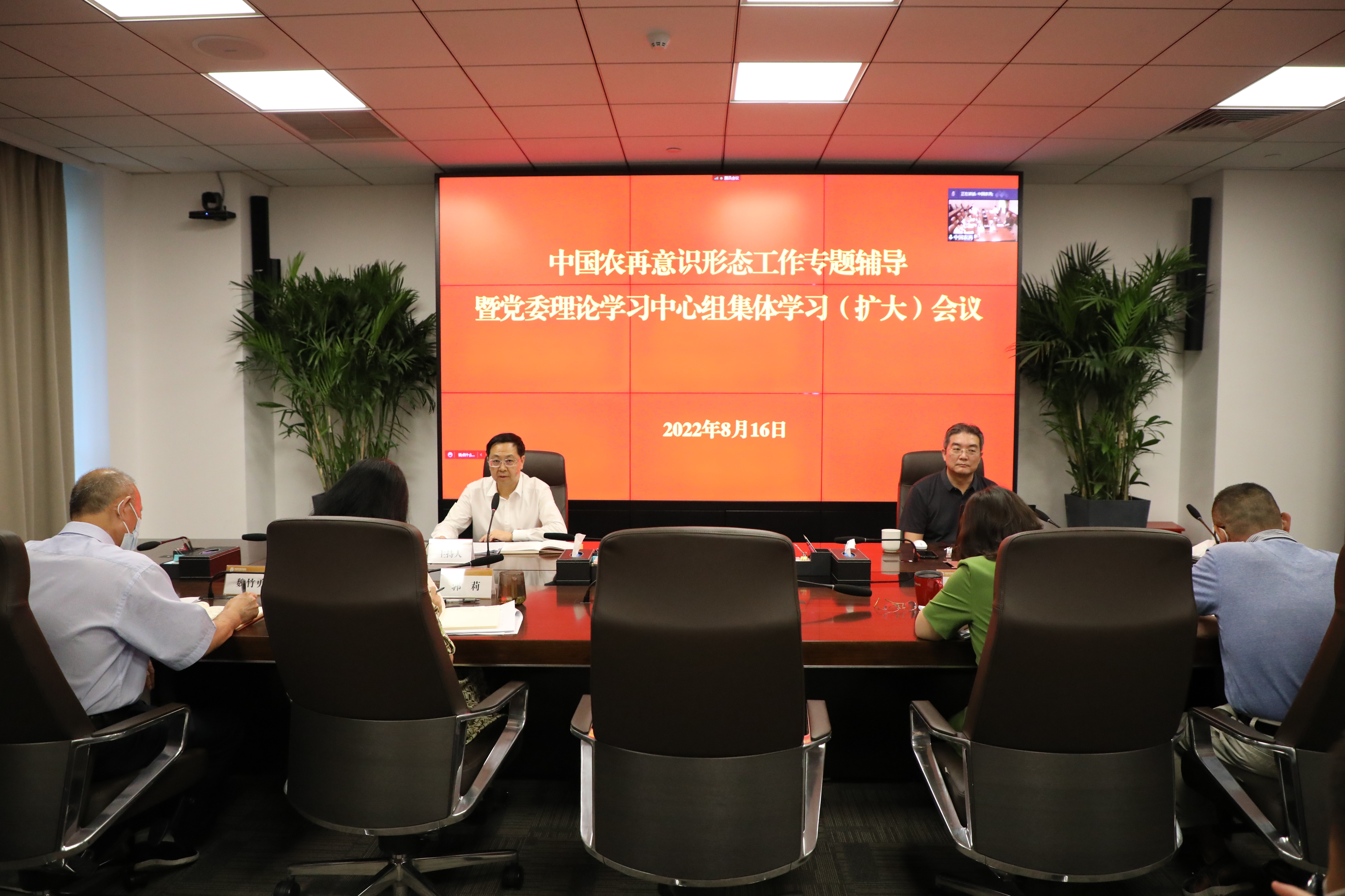 2022年8月16日,农业再保险公司党委理论学习中心组以“严格落实意识形态工作责任制,牢牢掌握意识形态工作领导权,积极营造迎接党的二十大胜利召开的良好舆论氛围”为主题,召开集体学习(扩大)会议。公司党委书记、董事长赵阳同志主持会议。会议邀请中共中央党校(国家行政学院)文史教研部副主任张军教授作意识形态工作专题辅导。公司党委班子成员、驻司股权董事和全体员工参加了学习,中心组成员开展了集体研讨。