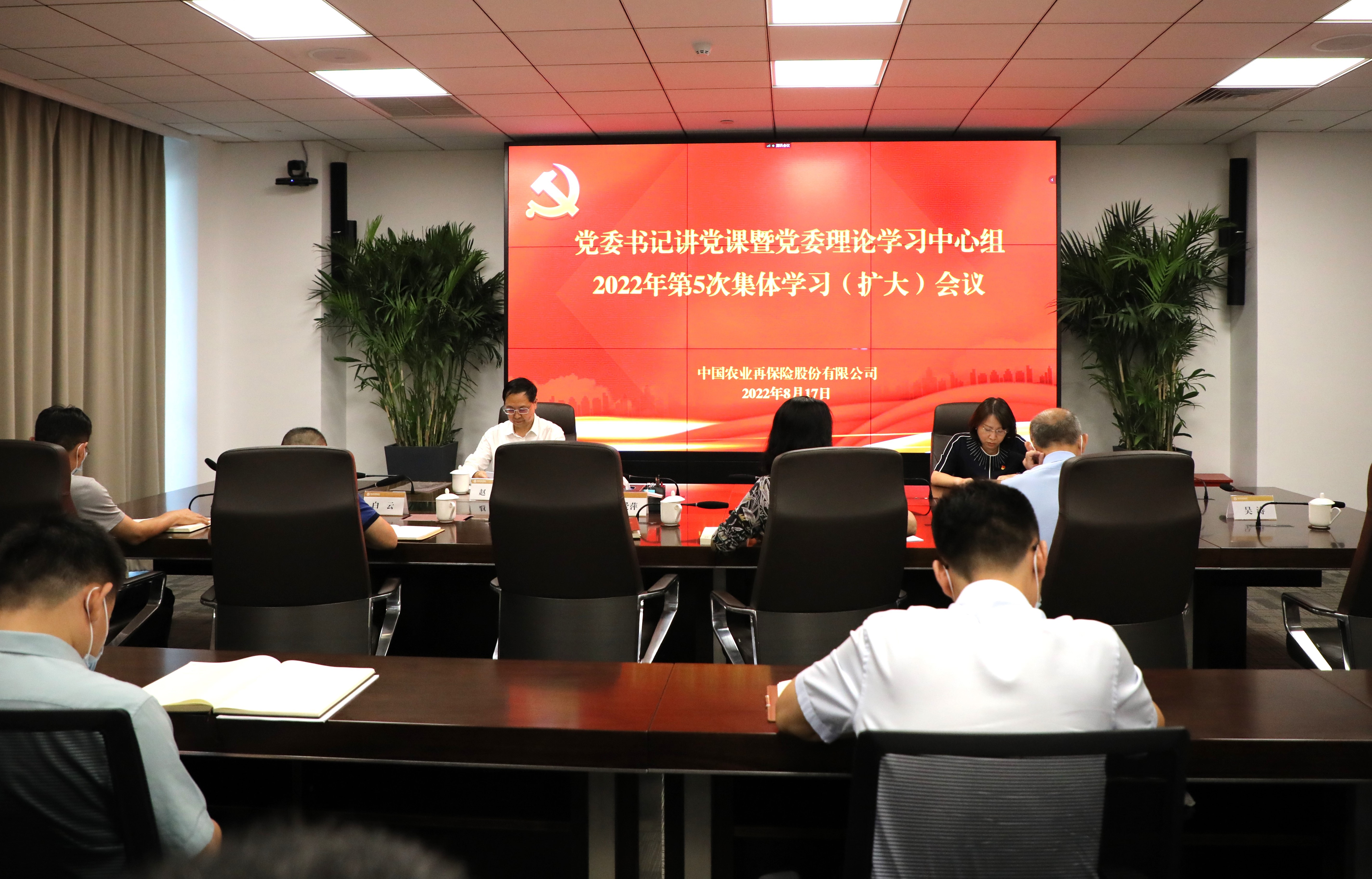 2022年8月17日,农业再保险公司党委以“深刻领会习近平总书记“三农”工作重要论述,深入践行总体国家安全观,切实服务和保障国家粮食安全”为主题,召开党委理论学习中心组2022年第5次集体学习(扩大)会议,公司党委书记、董事长赵阳同志向全体党员干部讲专题党课。公司党委班子成员、驻司股权董事和全体干部职工参加会议。会议举行了党员重温入党誓词活动,赵阳同志领誓。