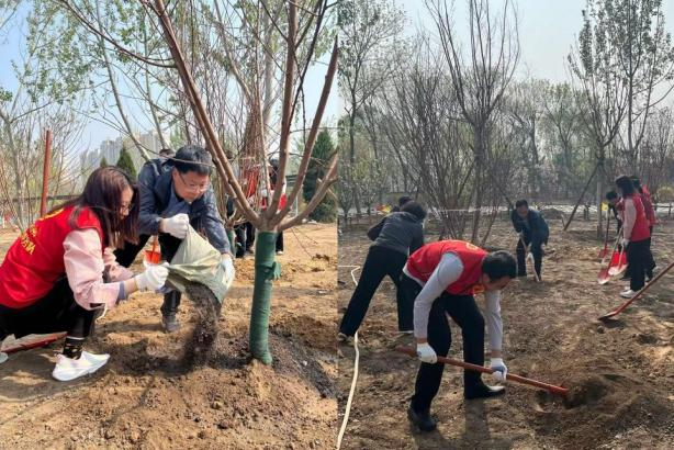 植树活动中,大家分工协作,互相配合,挥锹铲土、培土围堰、逐一施肥、提水浇灌,共栽植碧桃树20余株。通过本次义务植树活动,带动全体员工积极投身到生态文明建设中来,以更加昂扬的斗志和更加扎实的作风,投身农业再保险事业的火热实践,为助力金融强国和农业强国建设贡献农再力量。